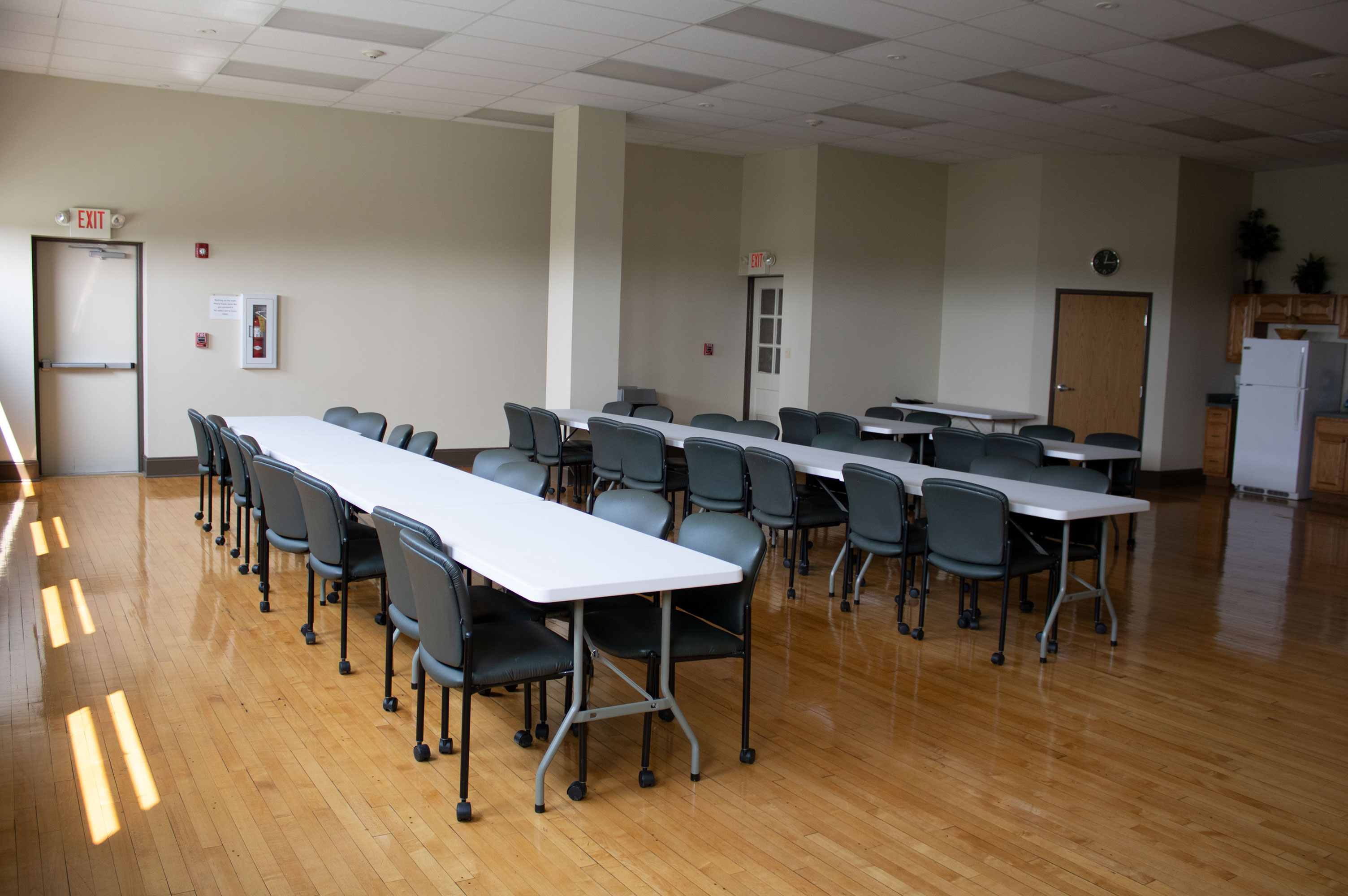 The tables in this room can seat 64 people and there’s a kitchenette equipped with a refrigerator and microwave. Ask the ETCC staff about the other rooms that work well if additional space is needed. Most popular are the gym/ auditorium, board room, or meeting rooms - perfect for breakout rooms!
